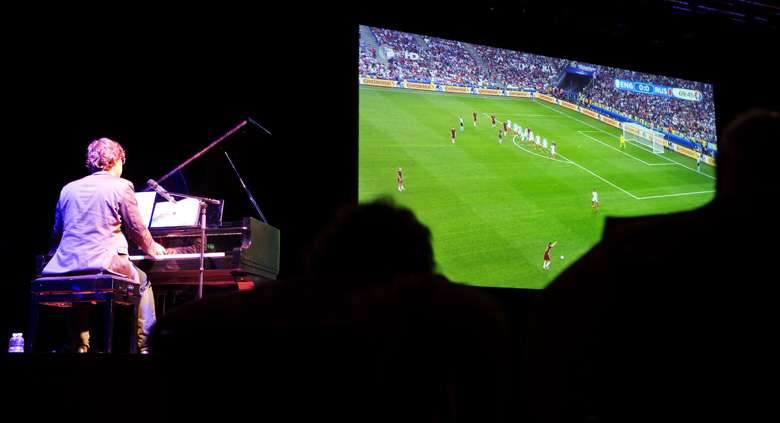 Eine einzigartige Show: Public Viewing ohne nervige Moderatoren, dafür mit dramatischer Live-Filmmusik. Mehrere tausend Gäste tobten in seinen EM- & WM-Shows bereits. SKY Sport News übertrug eine Halbzeit live, die Abendschau, das ZDF-Frühstücksfernsehen und zahlreiche andere nationale und internationale TV und Radio-Sender berichteten.